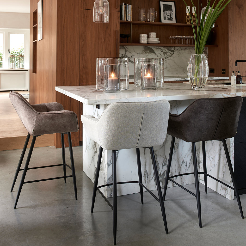 Onze Carnaby Counter Chair past perfect onder je keukenblad, aangezien deze iets lager is dan een barstoel. Bekleed met linnen in een lijnkleurige mouliné, biedt de zitting uitzonderlijk comfort. De zwarte metalen poten maken de trendy industriële uitstraling compleet. Mix en match met andere kleuren uit onze Carnaby Counter Chair-collectie.