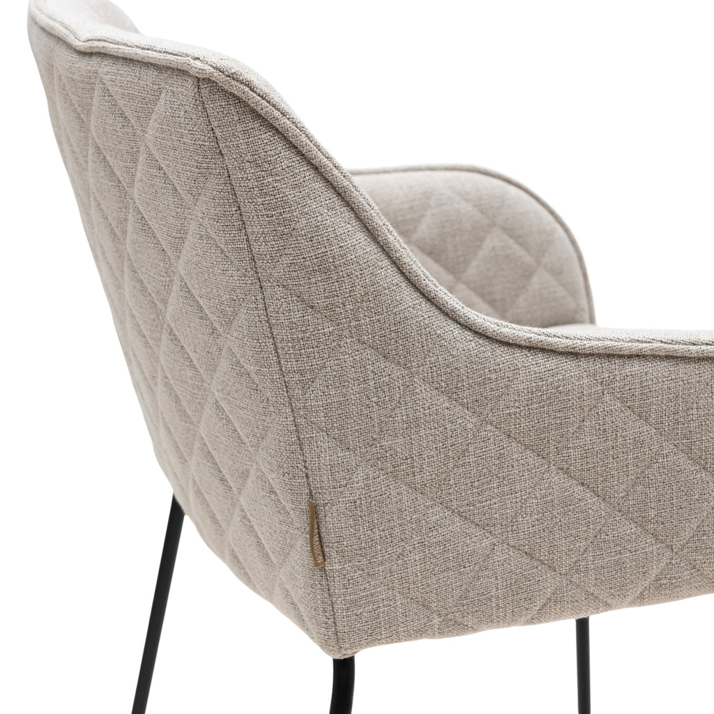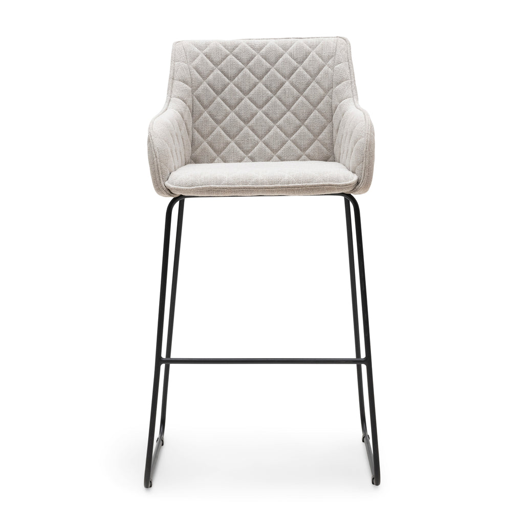 Of je nu lang of kort op je barkruk zit, een comfortabele zit is altijd prettig, zoals bij deze barkruk uit de Frisco Drive serie. Deze barkruk heeft dezelfde schuin gestikte randen als de eetstoelen uit deze lijn. De poten zijn gemaakt van slank metaal met een zwarte poedercoating, wat deze chique barkruk een stoere, industriële uitstraling geeft.