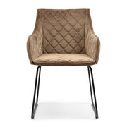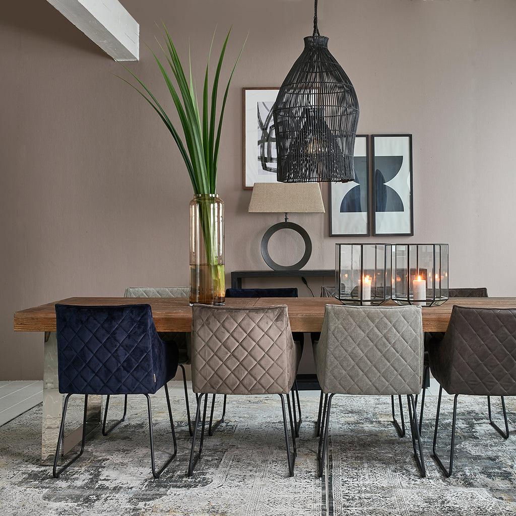 De Frisco Drive eetkamerstoel heeft een stevig zitvlak en een robuust ijzeren frame. De stoel is voorzien van een gestikt diamantpatroon. Deze eetkamerstoel heeft een klassieke uitstraling die in elk interieur past. Deze stoel met armleuningen is verkrijgbaar in verschillende kleuren en stofferingen.