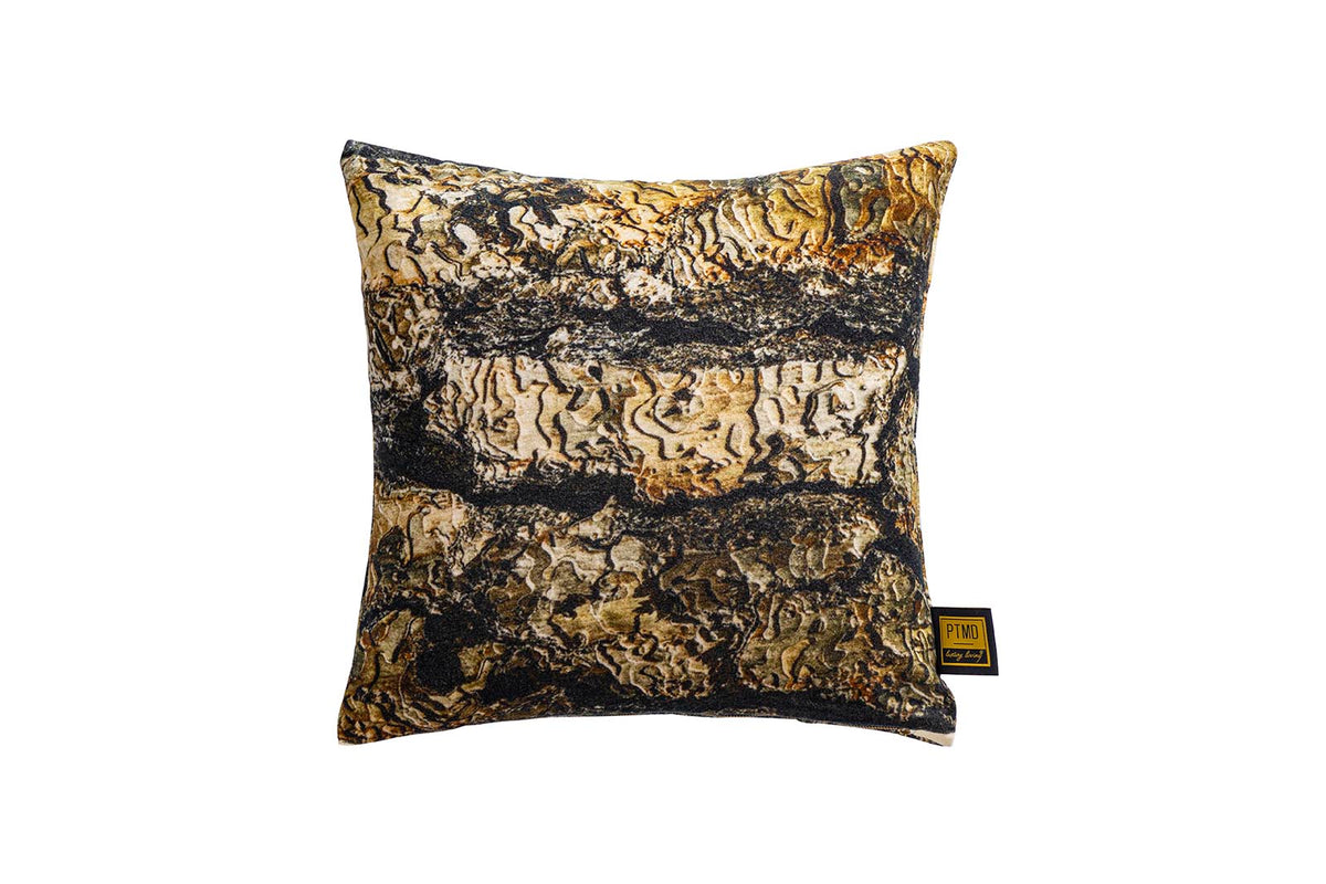 Natuurlijk en stijlvol: dit kleine kussen is gemaakt van katoenfluweel in een warme bruine tint en heeft een subtiel bark-print patroon. Perfect voor een sfeervolle, natuurlijke touch in je interieur.