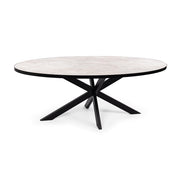 Ovale eettafel 'Mees' 210 x 100cm, kleur zwart / wit marmer