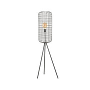 Vloerlamp Solido heeft een grote kap bestaand uit horizontale en verticale metaaldraden uitgevoerd in zwart. De mooie open structuur zorgt voor een optimale lichtspreiding en door het rastervormige frame ontstaat er een mooi lichteffect als de lamp brandt. De driepoot geeft het geheel een speels effect en zorgt er daarnaast voor dat de lamp stevig op de grond blijft staan. Solido is voorzien van een zwart strijkijzerkoord met een draaibare dimmer op het snoer om de gewenste hoeveelheid licht in te kunnen stellen.